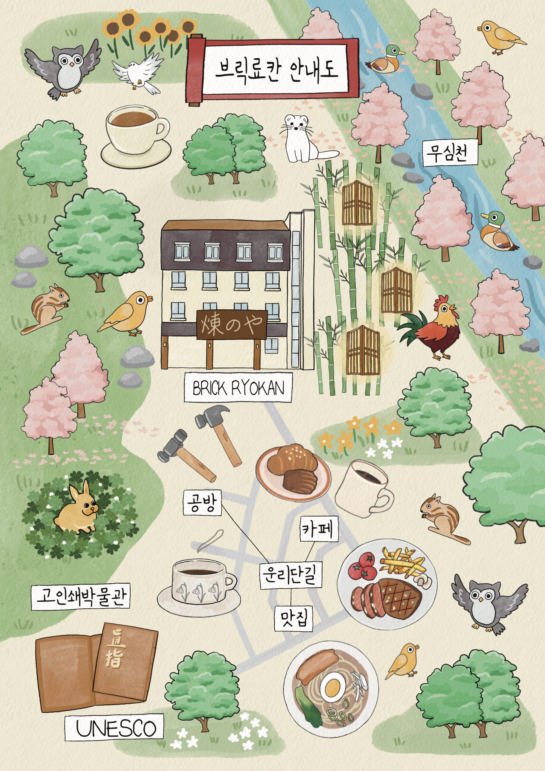 THE BRICK STAY 고요속에서 마음이 쉬어갑니다 PHILOSOPHY OF THE BRICK STAY 시간을 쌓아만든 공간 지역과 사람을 잇는 따뜻한 연결 온전한 쉽을 위한 정직한 공간 시간을 쌓아 만든 공간 Layered Time, Layered Space 오래된 건물, 낡은 벽돌, 그리고 그 안에 새겨진 사람들의 시간을 존중합니다.브릭은 새로 짓기보다, 시간이 만든 결을 남깁니다.그 위에 새로운 온기와 이야기를 쌓아, 과거와 현재가 공존하는 쉼을 완성합니다. 지역과 사람을 잇는 따뜻한 연결 Rooted Hospitality 여행은 장소를 바꾸는 일이 아니라, 관계를 새로 짓는 일이라 믿습니다.브릭은 지역의 결을 존중하며, 그 안에 사람과 사람을 잇는 따뜻한 경험을 만듭니다.우리는 ‘머무는 사람’과 ‘사는 사람’ 모두에게 열린 공간을 지향합니다. 진짜 쉼을 위한 정직한 공간 Honest Rest 화려한 장식보다 진짜 휴식이 머무는 공간을 만듭니다.편안함은 과하지 않은 배려에서, 아름다움은 절제된 조화에서 태어난다고 믿습니다.브릭은 사람의 체온이 느껴지는, ‘진짜 쉼’을 설계합니다 따뜻함이 머무는 자리로 초대합니다 브릭 청주본점 낡은 벽돌 건물에 새로운 숨을 불어넣은 브릭의 첫 번째 공간.오래된 도심 속에서 따뜻한 시간과 정직한 쉼을 선물합니다. 공간 둘러보기 브릭료칸 일본식 정취와 한국적 온기가 스며든 고요한 숙소.시간이 느리게 흐르는 공간에서 진짜 쉼을 경험하세요. 공간 둘러보기